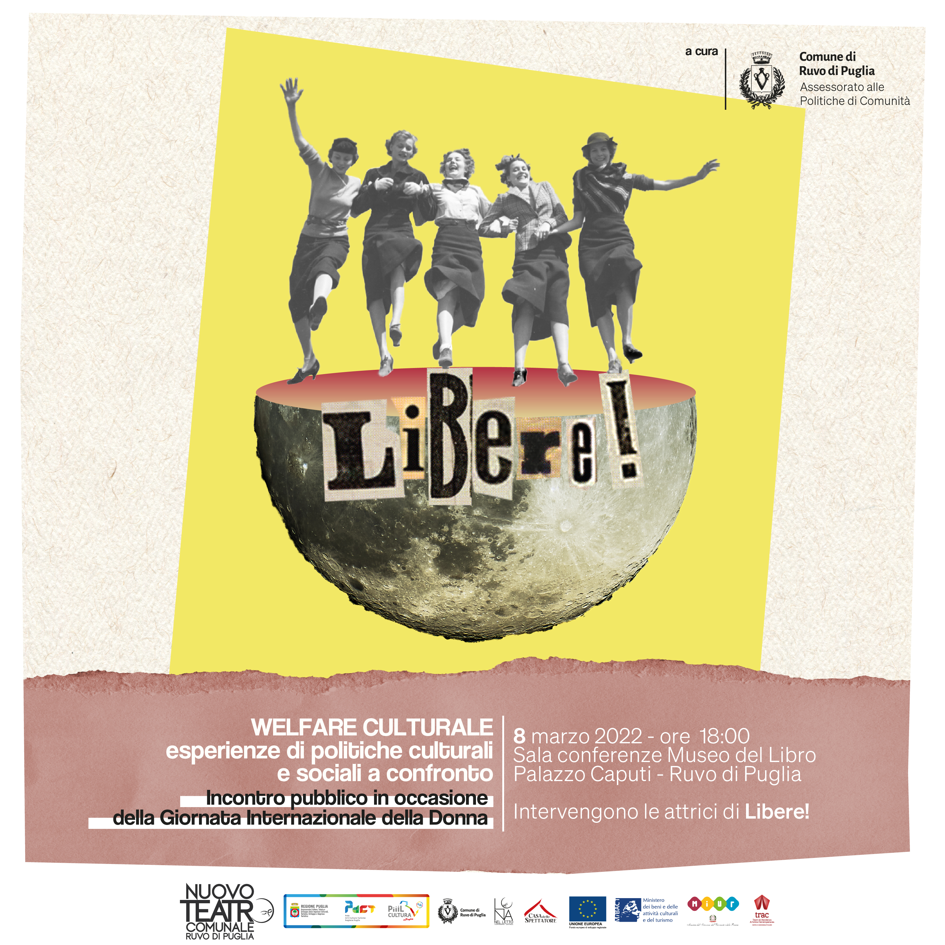 All’incontro parteciperanno le attrici della rassegna teatrale ‘Libere!’ (dal giovedì 10 al Nuovo Teatro Comunale organizzata dall’Assessorato alle politiche di Comunità in collaborazione con la compagnia La Luna nel Letto) e alcune rappresentanti del volontariato sociale.